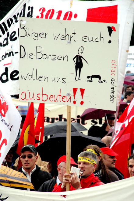 Politisches Handeln ist inzwischen reduziert auf eine fragwürdige weltweite Standortlogik. „Insbesondere die Verlagerung politischer Entscheidungsprozesse auf die internationale Ebene ist ein Mittel der Entdemokratisierung“, so der Politikwissenschaftler Joachim Hirsch. Der Vertrag von Lissabon ist Beispiel für eine neoliberale, unsoziale, kriegerische und demokratiefeindliche europäische Gesellschaftsordnung, über deren negativen Folgen in den Medien nicht berichtet wird. Er ist die Fortführung totalitärer europäischer Herrschaft, in der vor allem die deutsche Politik eine treibende Kraft war und ist.