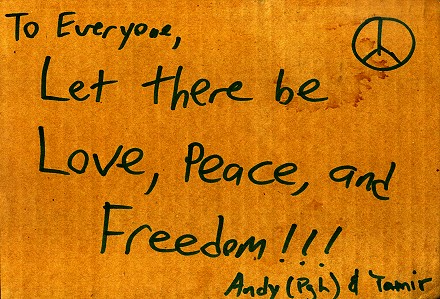 An jeden: Lasst Liebe, Frieden und Freiheit entstehen!