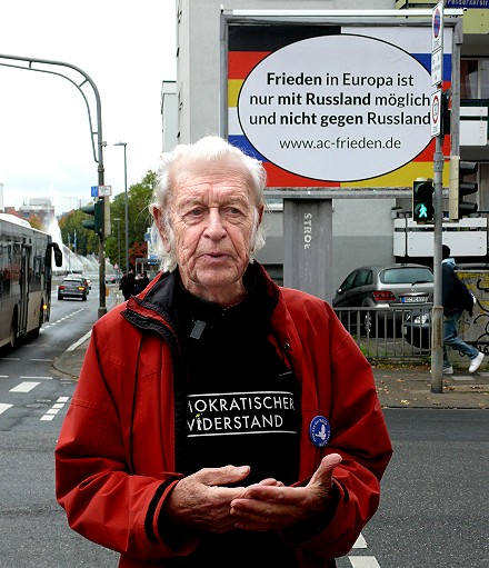 Worum geht es eigentlich? Um acht großflächige Plakate in Aachen, auf denen als Hintergrund die Flaggen von Russland und Deutschland zu sehen sind und auf denen zu lesen ist: "Frieden in Europa ist nur mit Russland möglich und nicht gegen Russland" – darunter die web-Adresse der Urheber: ac-frieden.de. Das wissen nun viele, die ohne eine Sendung wie die "Lokalzeit" die Plakataktion hätten übersehen können. Dankbarkeit ist also geboten. "Herzlichen Glückwunsch und 1000 Dank für eure Aktion!" Das ist einer von zahlreichen anerkennenden Kommentaren.