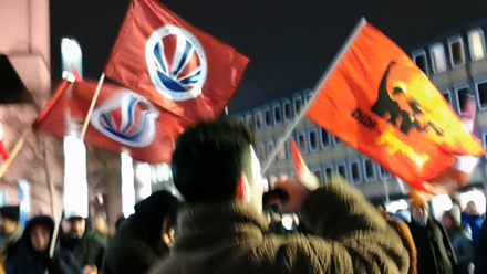 DKP-Sprecher: Diese offene Aggression zeigt deutlich die Gefahr von fortschreitender Aufrüstung und Militarisierung. Die Milliarden für Waffen und Wehrpflicht werden versucht, uns als notwendige defensive Maßnahmen zu verkaufen. … Wir stellen uns dagegen, sind hier um für Frieden und gegen Krieg zu kämpfen.
