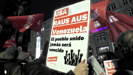 DIDF-Sprecherin: Wir müssen heute eine weitere Wahrheit deutlich aussprechen: Die Doppelmoral der deutschen und europäischen Politik ist nicht einfach nur ein Fehler. Die gleiche Bundesregierung, die sich mit moralisch erhobenem Zeigefinger als Verteidigerin des Völkerrechts inszeniert, schweigt, wenn Washington Bomben abwirft. Die gleichen Politiker, die in endlosen Reden territoriale Integrität der Ukraine beschwören, massiv aufrüsten und auch darüber nachdenken, Soldaten zu schicken, schauen weg, wenn ein lateinamerikanisches Land überfallen wird.