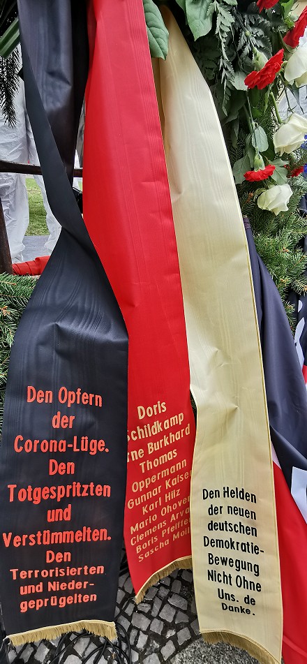 24 Anselm Lenz und Hendrik Sodenkamp mit dem Kranz für die Opfer des Corona-Regimes