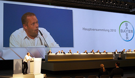 Für den „Winter 2009/2010 sind nach Schätzungen von Fachleuten des Umweltbund e.V. in Deutschland je nach Region zwischen 30 und 60 Prozent der Bienenvölker verendet. Das sind im Schnitt etwa 20 - 50 Prozent mehr als üblich“, berichtete Imker Manfred Geber auf einer Bayer-Aktionärsversammlung Ende April 2010 (Siehe NRhZ v. 5.5.2010). Im vorangangenen Jahr waren es noch einmal 15 – 20 Prozent. Eine Untersuchung in den USA habe zudem ergeben, dass in Bienen, Bienenwachs, Pollen oder Pflanzenproben im Schnitt etwa 7 Wirkstoffe gefunden worden, die dort nicht hingehören. Gerber macht die Pestizide von Bayer mitverantwortlich für die Situation. Agrarminister und Europäische Union schlagen Alarm und fordern gegen die „rätselhaften Erkrankungen“ Medikamente für Bienen genau von der Chemischen Industrie, die höchst wirksame Pestizide in Natur und Landwirtschaft verbreitet.