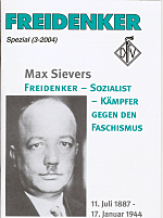 Der so staatenlos Gewordene verbreitete vom Saarland aus bis zu dessen „Anschluß" ans Reich 1935 weiterhin den „Freidenker". Seit 1937 gab er zunächst in Antwerpen, dann in Paris die Wochenzeitung "Das freie Deutschland" heraus und publizierte 1939 die Schrift "Unser Kampf gegen das Dritte Reich", die in deutscher Sprache von Stockholm aus verbreitet wurde. Im Mai 1940 wurde Max Sievers im nazibesetzten Belgien verhaftet, konnte aber nach Frankreich fliehen und dort als Illegaler mit gefälschten Papieren leben. Am 3. Juni1943: Verhaftung durch die Gestapo und Deportation in das Gestapogefängnis in der Prinz-Albrecht-Straße, dann in das Untersuchungsgefängnis Berlin-Plötzensee.