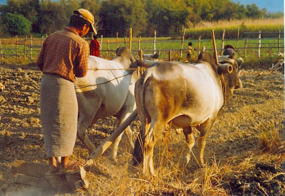 In Asien völlig normal: Ochsengespann in Myanmar