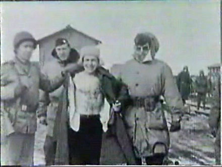 Namen und Schicksal des verzweifelten Russen im obigen Bild sind überliefert: Konstantin G., der von seinen amerikanischen Bewachern wie eine Trophäe vor die Kamera geschleppt wird, hatte versucht, sich mittels 17 Messerstichen in die Brust das Leben zu nehmen. Auf dem Filmausschnitt, aus dem ich das Standbild geholt habe, wird er schwer atmend von seinen US-Bewachern gezwungen, mit offenbar dem Nachrichtenwert geschuldeter blanker Brust vor die Kamera zu treten. Er schnappt bereits nach Luft. Möglicherweise hat er einen Pneumothorax: es wird Luft in den Brustraum treten, eine Lunge wird zusammengepresst, das Herz am Pumpen gehindert. Es darf somit bezweifelt werden, daß Konstantin G. die Heimat lebend erreicht hat.