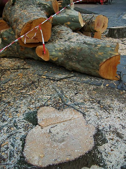 Platane mit mehr als zwei Meter Stammumfang am Boden – auf dem kleinen Offenbachplatz