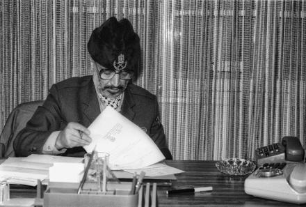 Jassir Arafat im Büro seines Hauptquartiers in Tunis, Tunesien, 20. Januar 1987