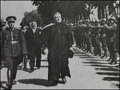 In Folge 10 beschreibt Deschner das Wirken von Pius XII., dessen Wahl von den Nazis in Deutschland und Italien vollen Beifall fand. Der Papst erflehte sogleich für Hitler - die "Reichskristallnacht" war schon vorüber - "den Segen des allmächtigen Gottes". Als Hitlers Truppen in die Tschechoslowakei einfielen, lehnte er "sehr entschieden" ab, sich dem Protest der demokratischen Staaten anzuschließen. Der katholische Geistliche und Ministerpräsident der Slowakei, Tiso (siehe Bild), lieferte Hitler drei Divisionen und versprach noch im Herbst 1944:"Die Slowakei wird an der Seite der Achsenmächte bis zum Endsieg stehen."