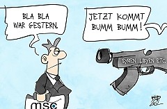 Nach der unsäglichen Drohnen-Diskussion in Deutschland, sprechen sich jetzt auch noch Verteidigungspolitiker in der "GRO/KOTZE"-Regierung dafür aus, dass die Bundeswehr in den nächsten Jahren "bewaffnungsfähige" Aufklärungsdrohnen des Typ Heron TP von Israel least, die mit dem Davidstern, die Israel zum Morden von Palästinensern einsetzt! Dafür sind u. a. der Verteidigungspolitische Sprecher der SPD-Fraktion Rainer Arnold und sein CDU Kollege Henning Otte. Da sich diese Heron Drohne doch so gut in Afghanistan bewährt hat, " Ausbildung und Einsatz sind eingeübt" und es gelte, sich "nicht auch noch bei Drohnen von den Amerikanern abhängig zu machen". (4) Was für ein tolles Argument, vom Regen in die Traufe. Schöne neue Welt der militarisierten Außenpolitik, angeführt vom "Bundesgauckler" bis zur "Drohnen-Mutti"!