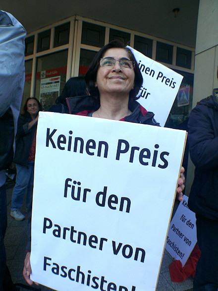 Protest gegenüber dem Rathaus: „Keinen Preis für den Partner von Faschisten“