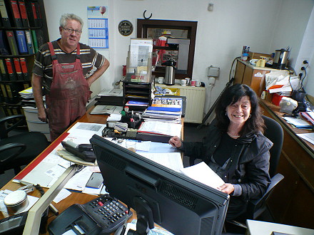Dorothea und Theo Puchelski im Büro der Werkstatt. Vor 33 Jahren wirbelte der älteste von drei Söhnen als Kleinkind durch Büro, Werkstatt und übers Außengelände.