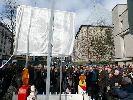 Die organisierte Verantwortungslosigkeit sei zu beenden, sagte Frank Deja von K2A2. „Deshalb ist der heutige 7. Gedenktag für uns eine fortwährende Mahnung für ein 'Mehr Nachdenken' und ein 'Mehr Vordenken'. Damit sich solch eine Katastrophe nie wiederholt.“ Das waren die Schlussworte von Stadtdirektor Guido Kahlen beim Gedenken an die Zerstörung des Kölner Stadtarchivs vor siehen Jahren. Aufgerufen zum Gedenken hatten zwei Initiativen: "Köln kann auch anders" (K2A2) und "ArchivKomplex". Nach zwei Ansprachen, der von Stadtdirektor Guido Kahlen - zum Stand der Entwicklung - und der von Frank Deja von K2A2 – zur "Zeitachse des Kölner Grundübels" -, und der Schweigeminute zum Gedenken an die Opfer wurde in einem feierlichen Akt in Anwesenheit von Kölns Bürgermeisterin Elfi Scho-Antwerpes und Bezirksbürgermeister Andreas Hupke eine von Mischa Kuball, Professor an der Kunsthochschule für Medien Köln, gestaltete Hinweistafel enthüllt.