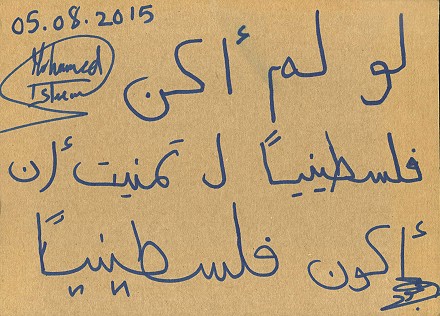 201. Im Inneren unserer Herzen lieben wir Dich, Palästina, wir, die Moslems, Tunesier, die ganze Menschheit. Ich liebe Dich, Palästina