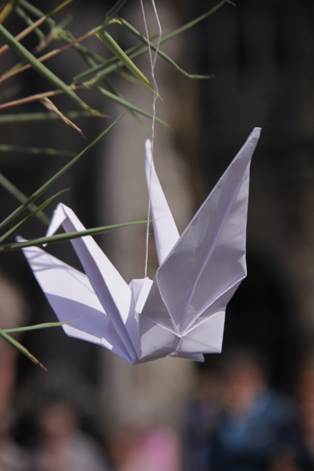 Mahnwache in Bremen – Vor Ort gebastelter Papierkranich