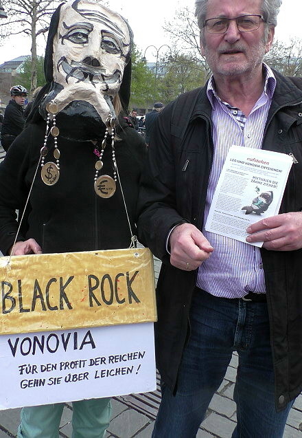 Auch in Köln fand wie in vielen Städten Deutschlands und weltweit am 6.4.2019 eine Kundgebung und Demonstration gegen die Mietenspekulation statt. Die Veranstalter mit DGB, Arbeiterwohlfahrt und Mieterbund hatten das lasche Motto „Wir wollen wohnen“ ausgegeben. Die großen Wohnungsspekulanten wie BlackRock&Co mit ihren Wohnungskonzernen wie Vonovia wurden nicht genannt, auch nicht die Forderung „Wohnen als Menschenrecht“ (Allgemeine Erklärung der Menschenrechte, Artikel 25,1) Und nur der Kölner Miet-Rebell Kalle Gerigk sprach über die Möglichkeit der Enteignung. Die Kölner Arbeitsgruppe „Kapitalismus heute“ verteilte ein viel gelesenes Flugblatt. Werner Rügemer als Mitverfasser hat es zur Situation in Köln und zur Berliner Enteignungs-Initiative aktualisiert.