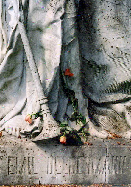 Bemerkenswert ist, dass auf der Grabstätte der Familie Oelbermann das Kreuz als zentrales christliches Symbol fehlt. Vom ursprünglichen Engel ist für Uneingeweihte nur eine Frauengestalt zu sehen. Diese steht vor einem steinernen Sarkophag. Erhobenen Hauptes blickt sie nach rechts oben, während sie mit der linken Hand den schweren Stoff über den Sarkophag zieht – oder von ihm wegzieht?