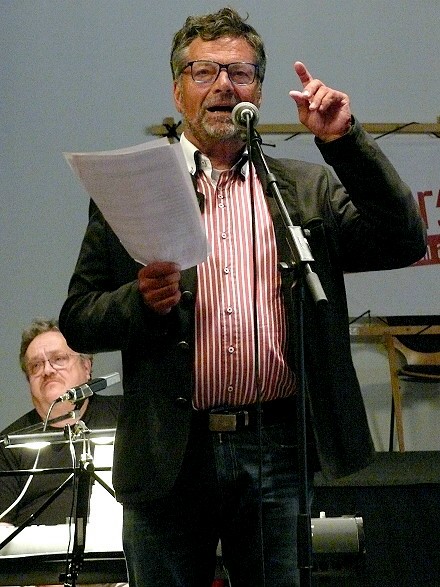 19 Diether Dehm bei der Abendveranstaltung – begrüßt die Hotelbesitzer, die den Linken Liedersommer 2022 gerettet haben
