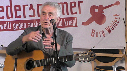 Jetzt hast Du gerade teilgenommen an einem Workshop beim Linken Liedersommer, dem neunten seiner Art, wo es darum ging, ein Protestlied zu verfassen und dabei den Gedanken des Denunziantentums zu thematisieren. Wie hast Du diesen Workshop empfunden? Ist der spontan aus der Situation heraus entstanden?