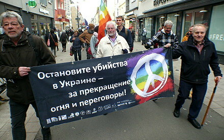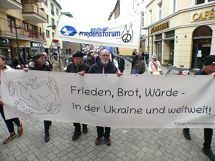Demonstration "Frieden, Brot, Würde – in der Ukraine und weltweit!" ausgehend vom Alter Markt zum Clodwigplatz (initiiert von DFG-VK NRW und Kölner Friedensforum):