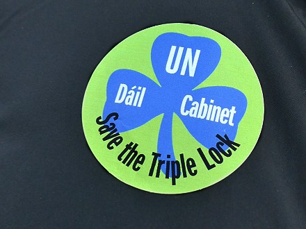 Sticker «Save The Tripple Lock» Emblem und Parole der Neutralitätsbewegung in Irland (Fotos: Peter Betscher)