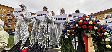 24 Anselm Lenz und Hendrik Sodenkamp mit dem Kranz für die Opfer des Corona-Regimes